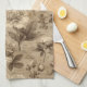 Vintage botanical floral pattern kitchen towel featuring soft cream and beige flowers with detailed stems, leaves, and delicate script accents on an aged neutral background. Elegant and timeless with a rustic floral aesthetic, this seamless design is ideal for cottagecore lovers, garden enthusiasts, vintage style fans, and botanical art admirers.