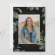 Vintage Botanical Lövs Black Photo Studenten Inbjudningar