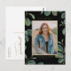 Inbjudan familj och vänner till din studentfest med det här anpassadet 2023 botaniskt studenten-vykort för inbjudan. Den har vattenfärgsfärgade löv på svart bakgrund. Anpassa boho studenten-vykortet genom att lägga till ett foto, namn, skola och annat. Det här vykortet för fotoinbjudan till studenten finns i andra kartonger.