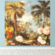 Lush tropical scene showcasing a variety of palm trees and colorful flowers. The setting evokes a sense of tranquility and natural beauty.
