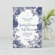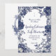 Step into timeless romance with this exquisite Victorian botanical wedding invitation design, inspired by antique 19th-century engravings and pressed flower artistry. Delicate navy blue peonies, lush blooms, intricate scrolling vines, and ornate ribbon details frame your special day in a classic blue-and-white botanical style that whispers of English gardens and heirloom elegance.