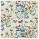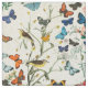 Vintage botaniska fjärilar och fåglar med blommönster i rött, blått, gult, orange och guld med en subtil bakgrund av elfenbensdamm. Underbar tyg för tappning, syning och hantverk. Designad av © Tim Coffey.