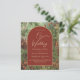 Vackra terrakotta, burgundblommor förekommer på den här vintagen botaniska arken bröllop med texten guld.
