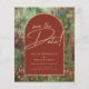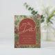 Vackra terrakotta, burgundblommor förekommer på den här vintagen botaniska arken bröllop med texten guld.