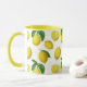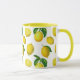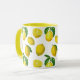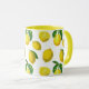 Mugg i en utskrift av spridda citroner och löv baserade på inslag av botaniska vintagar, digitalt utökade