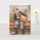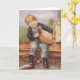 En underbar vintage bild av en pojke med sin husdjurskyckling.
