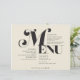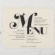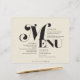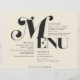 Den här vintagen stil 11 x 8,5 tum pappra lakan-middagen i bröllop går ut på svarta bokstäver med stiliserad "Menu," i stor svart brev på gräddbotten. Menyn har platshållare för två aptiserare, två poster, två öknar och bröllop par initialer.