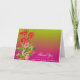 Detta är ett vackert rosa och grönt tackkort i vintage stil med blommor och påfågel design.