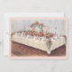 Vintageillustration mat och dryck bild med ett bröllopsbankettbord dukat för middag, dekorerat med blommor och ljus och redo för festen.
