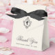 En vintage elfenbensvit och svart presentask för regency-inspirerad bröllopsfest. På klaffen finns en blomsterformad vapensköld med en regency-dams profil siluett i.