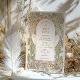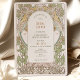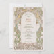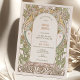 Denna fantastiska bröllopsfestinbjudan har den ikoniska Art Nouveau-stilen av Alphonse Mucha. Designen är inspirerad av Art Nouveaus eleganta linjer och flödande kurvor, med en touch av Art Deco-glamour. Inbjudan har intrikata blomsterdetaljer. Texten är tryckt i en stilren typsnitt, perfekt för alla eleganta bröllopsfester.