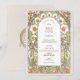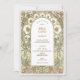 Denna fantastiska bröllopsfestinbjudan har den ikoniska Art Nouveau-stilen av Alphonse Mucha. Designen är inspirerad av Art Nouveaus eleganta linjer och flödande kurvor, med en touch av Art Deco-glamour. Inbjudan har intrikata blomsterdetaljer. Texten är tryckt i en stilren teckensnitt, perfekt för alla eleganta bröllopsfester.