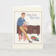 Retro/Vintage Påsk hälsningskort. Knivklätt ung man med hans rekordsamling. Glad påsk Brother!