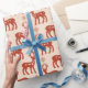Vintage Brown Reindeer jul-temat som slår papper för att omkullkasta julklappar.