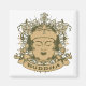 Buddha-design med brunt och brunt blommigt, blomning och Buddhas ansikte i centrum. Lägre banderoll med BUDDHA-text. Buddhistiska gåvor från stil i Underbar vintage!