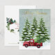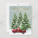 Julgranar är på väg i vintagen Red lastbil skapar att det är leveranser och att navigera genom snö. Träd med snö har ställt in bakgrunden och ett guld God jul-meddelande. Anpassa på baksidan i ett charmerande helgdag ram. Vintagen Red lastbil är VeryaStudios teckningar på Etsy.com