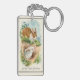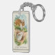 Två vackra bunnier spelar göm och söker utanför. Den ena kaninen är brun och vit och den andra vit. Meddelande: Loving Påsk Hälsning. Bild av ett vykort för Vintage Påsk med ett anpassningsbar gammalt snöre beige gräns.