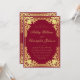 Denna eleganta burgunderröda och gyllene bröllopsinbjudan med vintage-känsla har en utsirad förgylld ram med eleganta barocka förgyllda dekorationer på en burgunderröd bakgrund. Brudens och brudgummens namn är skrivna med en elegant kalligrafisk stil. All text kan anpassas och har en gyllene färg liknande den förgyllda vintage-ramen.