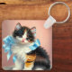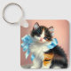 Nyckelkedja med en söt Kattunge. Kattungen bär ett blått band medan sitta på bord. En perfekt gåva till kattälskare och Viktorianska konstentusiaster!