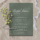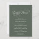 Enkelt och elegant inbjudningskort för möhippa med ord "Möhippa" i kalligrafi. Mörk, grönt färg för bruden som gillar en moody palett i färg.