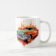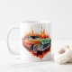 This ceramic coffee mug is shown in a vintage car art print.