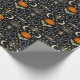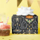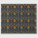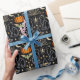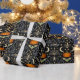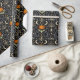 A sophisticated Art Deco–inspired Halloween repeating pattern featuring sleek black cats with luminous green eyes, stylized pumpkins, crescent moons, spiderwebs, and delicate spiders. The design is arranged in a balanced, symmetrical rhythm with clean geometric lines and elegant motifs, set against a deep black background. A refined color palette of gold, warm ivory, muted orange, soft gray, and subtle green accents gives the pattern a vintage-glam feel that nods to 1920s–1930s Deco aesthetics while remaining playful and seasonal.