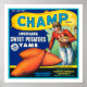 Vintage frukt låda-etikett för Champ-märket Louisiana Sweet Potatis.