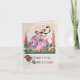 Bilden på det här kortet har anpassats från ett vykort för vintage. Det visar en underbar ung dam i en blomsterträdgård med vad som verkar vara foxhandskar, ro, poppies, solros och ett band med två hjärtan på det.