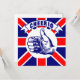 Vintagen är utformad med Union Jack, en tumme upp och den gamla brittiska saluteringen Cheerio.