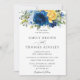 Vintage Chic Blue Gult Blommigt Greenery Bröllop Inbjudningar