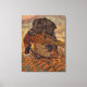 Det här är en vintage målning av en Chocolate Labrador Retriever som jagar en fasan.