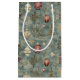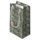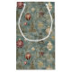 A pattern of elegant, vintage cream and red Christmas ornaments against a faded blue background.