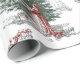A vintage toile pattern in red and pine green showing charming Christmas tree scenes and Victorian figures. Elegant gift wrap with a nostalgic, storybook feel, perfect for presents, mantel displays, and festive styling.