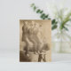 Det här vykortet innehåller ett foto av sällsyntets vintage som skildrar en 1900-talets cirkus starkarman som lyfter fyra manar sitta på en tunna.