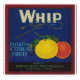 Denna sjudande vintage låda-etikett från Whip Brand belyser Florida-citrusfrukter med fetstilt typografi och färgstarka illustrationer av en orange och grapefrukt. Den här återdesignen är packad av Winter Haven Fruit Sales Corp och visar på den charm som 1900-talets reklam i tidigt har. Perfekt för uppsamlare av jordbruksmemorabilier, livsmedelsreklam för vintagar eller som ett unikt tillskott till köksdekoration, firar denna märkning historien om Floridas citrusindustri Wi