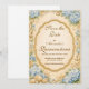 A romantic vintage coastal design featuring soft blue hydrangeas, seashells, nautical rope, and delicate anchors surrounding an elegant ornate frame. The watercolor florals and warm antique parchment background create a timeless seaside aesthetic inspired by classic botanical illustrations and coastal gardens. Perfect for an elegant celebration with a refined ocean-inspired atmosphere.