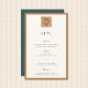 This vintage coastal wedding menu is designed for couples planning a beach or destination wedding with a modern vintage aesthetic. Featuring a refined art-deco influence and a balanced teal and warm orange color palette, it brings a polished yet relaxed feel to coastal wedding receptions. The subtle decorative detailing at the top adds a sense of structure and elegance, making the menu feel intentional and thoughtfully designed without overpowering the table setting.