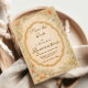 A romantic coastal design featuring delicate seashells, starfish, soft coral florals, and flowing seaside greenery surrounding an elegant ornate frame. The watercolor illustrations and warm antique parchment background create a timeless beach garden aesthetic inspired by vintage botanical prints and ocean charm. Perfect for a refined seaside celebration with soft coastal elegance.