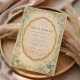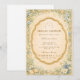 En mjuk vintage kustdesign med ömtåliga vilda blommor, snigelhus, sjöstjärnor och flödande havsgrönska arrangerade runt en elegant utsmyckad ram. De akvarellblommor och varma antika pergamentbakgrunden skapar en romantisk strandträdgårdsstil inspirerad av klassiska botaniska illustrationer och kustcharme. Perfekt för en förfinad kustfirande med tidlös naturlig elegans.