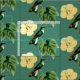 Mönster av en lätt grönt hummingbird med vit bröstkorg och svan på en gult hibiscus-anläggning. Visar bakgrunden till en mellanstor grönt. Välj Anpassa den om du vill ändra bakgrunden till färg.