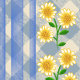 Vintage Country Daisies Blue White Check Stripe