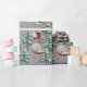 Retro presentpapper med en retro landsbygdskänsla. Röda hem kyrka och lador med snötäckta tak, och fina julgranar.