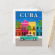 En levande illustration av Kuba mellan vintage och stil, med en kolonial kolonialarkitektur, handflatan träd och en klassisk retrobil. Perfekt som ett kubanskt vykort för souvenir, resekeepy eller samlarföremål.