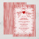 Romantiska röda och rosa bröllopsfestinbjudningar med vintage-känsla är perfekta för att vara värd för en elegant och minnesvärd förbröllopsfirande. Designad för brudar som älskar klassisk romantik med en touch av nyckfullhet, har denna bröllopsinbjudan klotter, en tidlös röd och rodnad färgpalett och ett lekfullt cupid-tema för att sätta tonen för en stilfull händelse. Den handritade randiga kanten ger en retro-charm samtidigt som den fortfarande känns fräsch och feminin, vilket gör den idealisk för traditionella bröllopsfester, brunches med valentine-tema eller intima firanden med nära vänner och familj. Med sin kombination av nostalgisk stil och modern attraktionskraft är denna anpassningsbara inbjudan perfekt för dem som planerar en hjärtlig bröllopsfirande som är både unik och oförglömlig. Oavsett om du firar hemma, på en bar, café eller på en privat lokal, säkerställer denna design att din händelse känns personlig, varm och perfekt på temat. Ett v