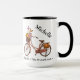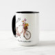 Detta är ett vackert mugg med en illustration av en vintage cykel med basket av blommor och ord "Njut livet". Ta den sceniska vägen". Mugg kan anpassas genom att namn ändras till mottagarens namn. Det här blir en underbar jul, födelsedag eller farväl.