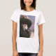 Denna T-shirt illustreras med en vintage av elegant dam i hennes finkläder. Hon står inför en vinterscen i snö. Perfekt till jul.