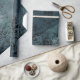 Vintagens indigo-blått och svarta, dammskorgsbyte.