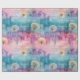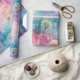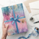Vintage dandelion abstract pattern wrapping paper featuring delicate seed heads layered over rich teal, pink, and muted purple watercolor textures. Dreamy and artistic with an ethereal mixed-media aesthetic, this seamless design is ideal for botanical art lovers, boho style fans, nature enthusiasts, and vintage-inspired decor admirers.