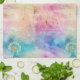 Vintage dandelion abstract pattern kitchen towel featuring delicate seed heads layered over rich teal, pink, and muted purple watercolor textures. Dreamy and artistic with an ethereal mixed-media aesthetic, this seamless design is ideal for botanical art lovers, boho style fans, nature enthusiasts, and vintage-inspired decor admirers.