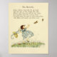 En dikt med vintagen "The Butterfly" trycks på den här poster tillsammans med en illustration av en liten flicka som springer i en skugga som jagar fjärilar. Dikt säger: "Flitter, fladder, fjäril, flyga upp! Upp! I det ljusa blå himmel, Väncker och dip, och gnistra och flyt, Din guldsegel som en älvsbåt! Och baby kommer att skratta och följa efter dig."